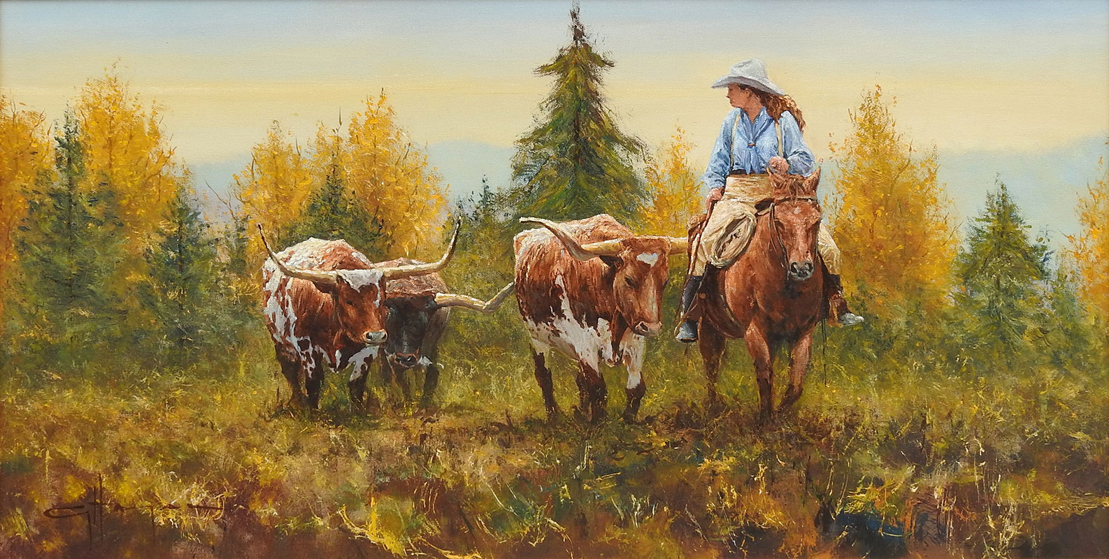 Home » Browse Artist » Western » Robert Hagan » Robert Hagan Horse Rider Cows » Large Image