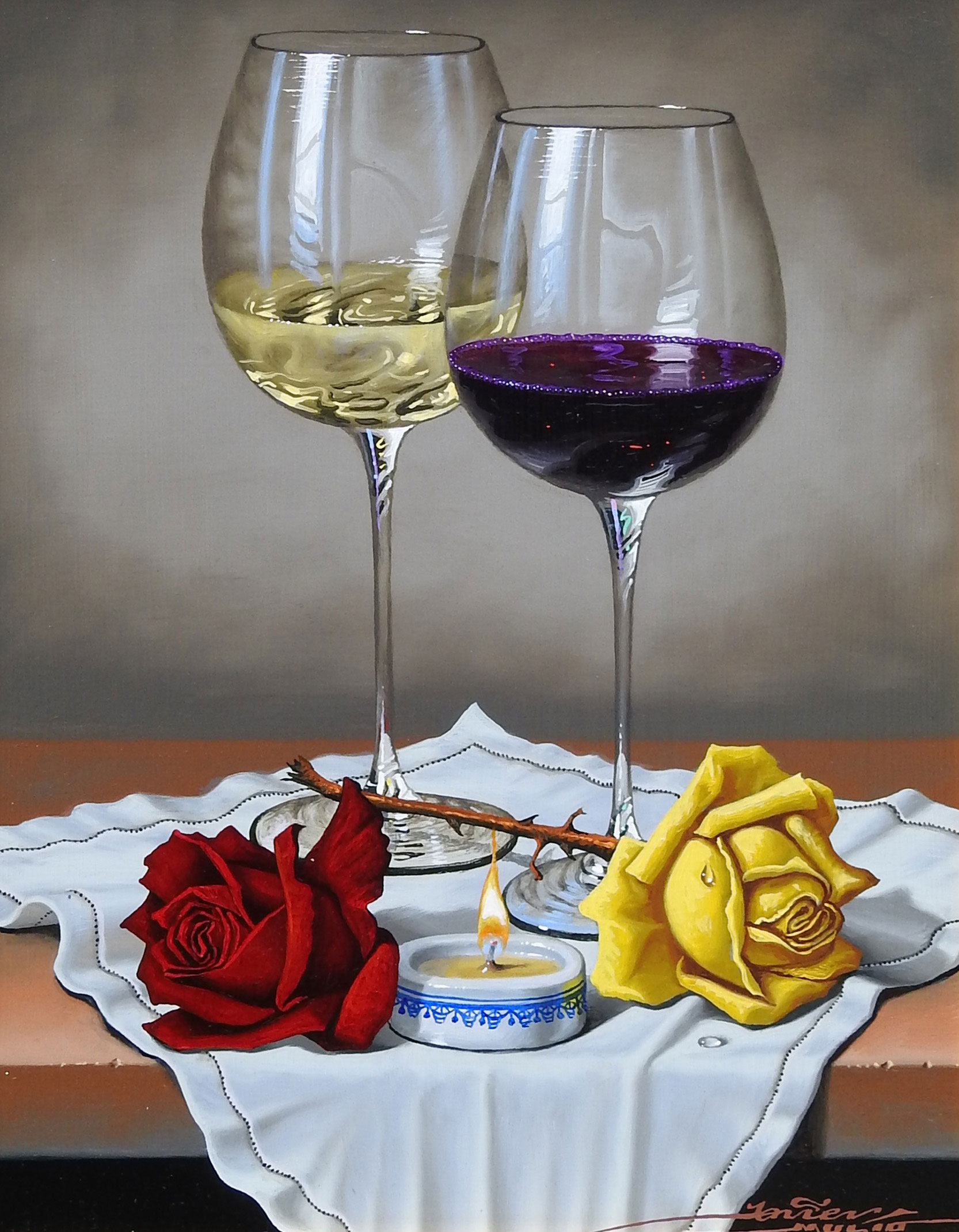 Home » List Of Artists » Realism » Javier Mulio » Javier Mulio Vino Y Flores » Hi Res Image